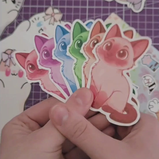 Cute Cat Stickers Glossy Waterproof Kawaii Cats Large Pack or Single