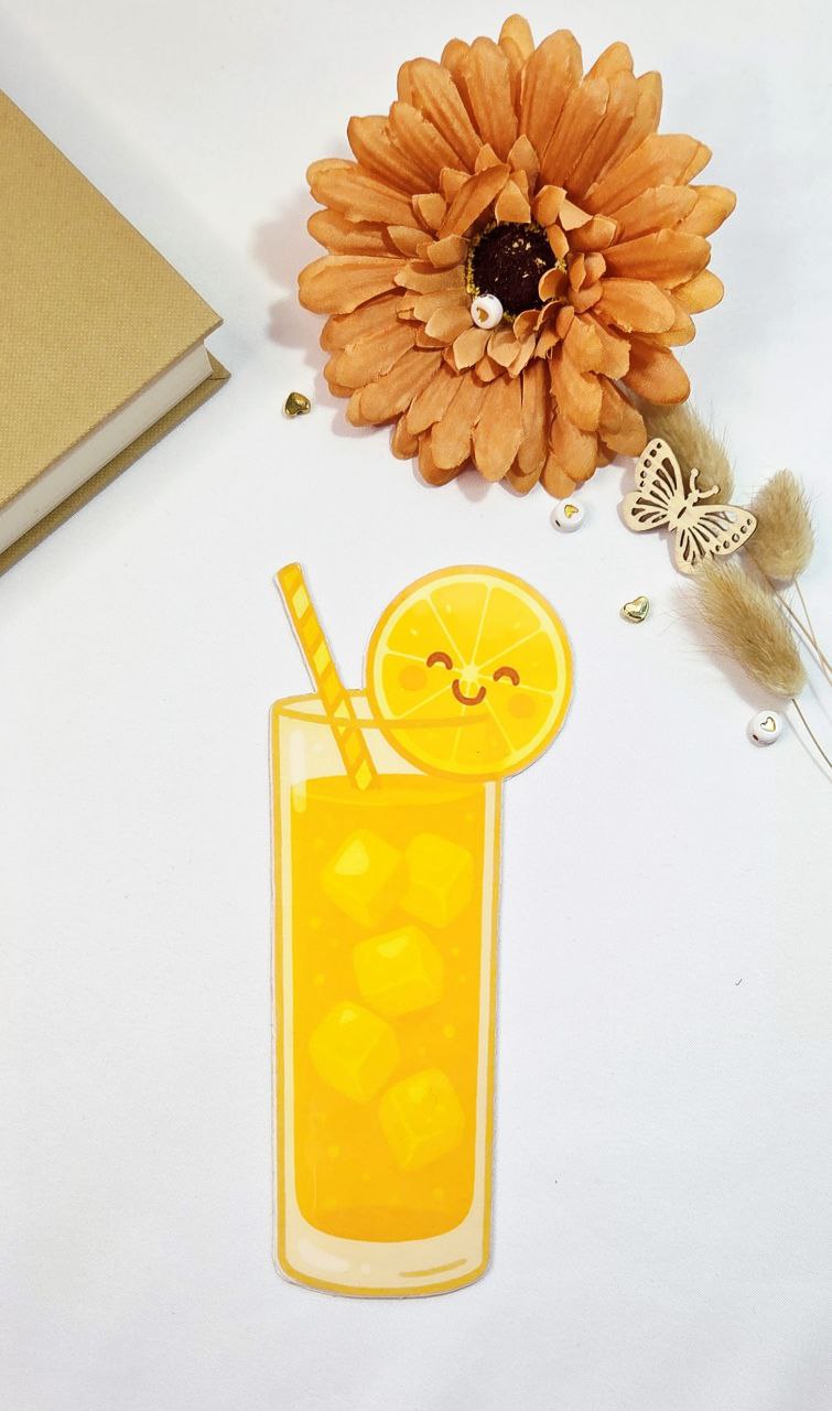 A fresh handmade bookmark shaped like a tall glass of lemonade – bright, cheerful and ideal for summer reading vibes.