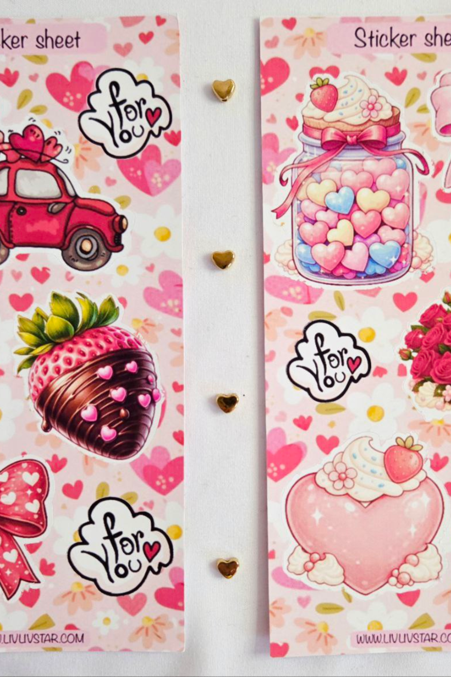 Sweetheart Bloom Matte Waterproof Sticker Sheet Pack of 4 by LivLivStar. Romantic pastel heart aesthetic stickers designed for laptops, water bottles, journals, planners and gift decoration. Size 16x7.8 cm. High-quality matte finish. Waterproof and durable decorative stickers for girls, teens and stationery lovers.